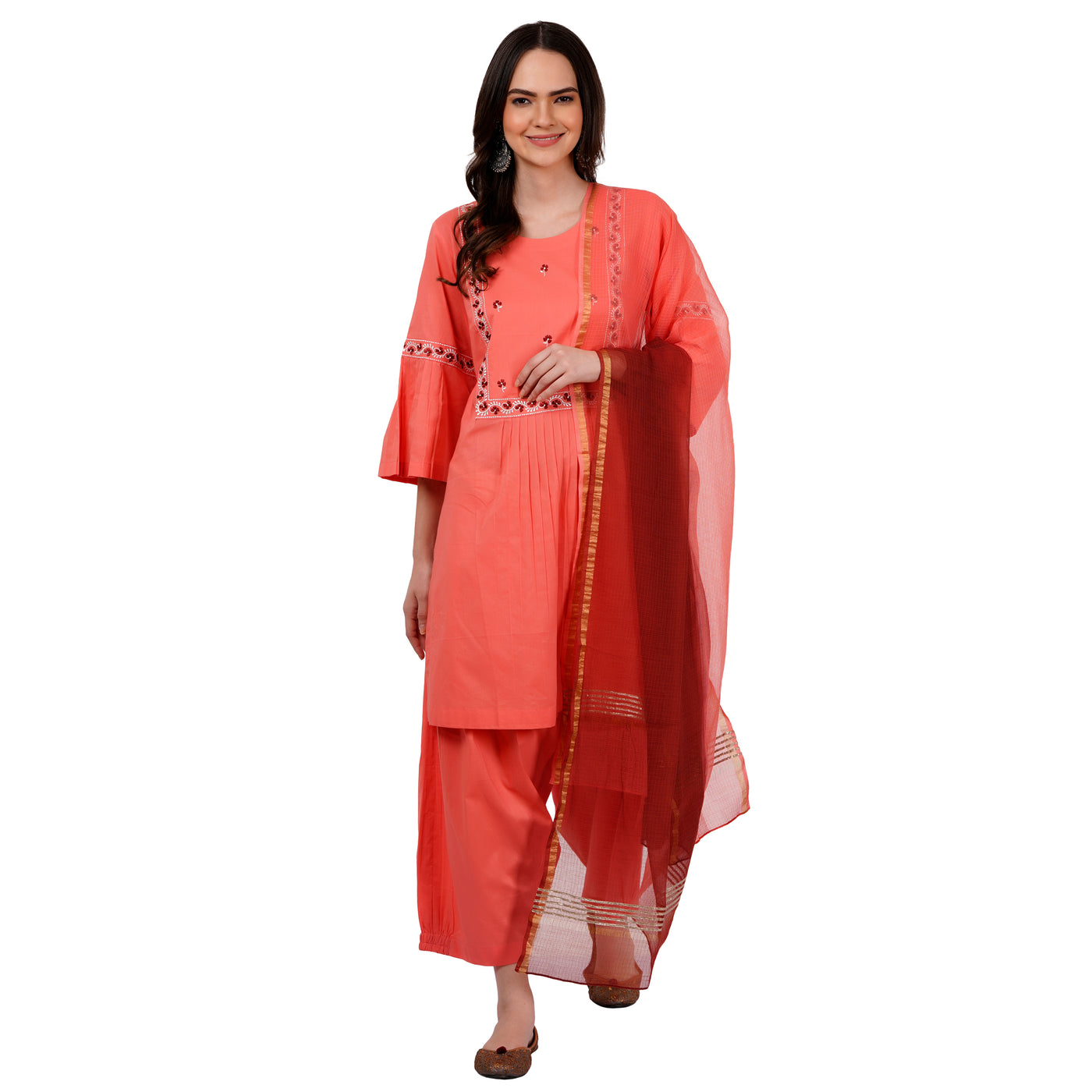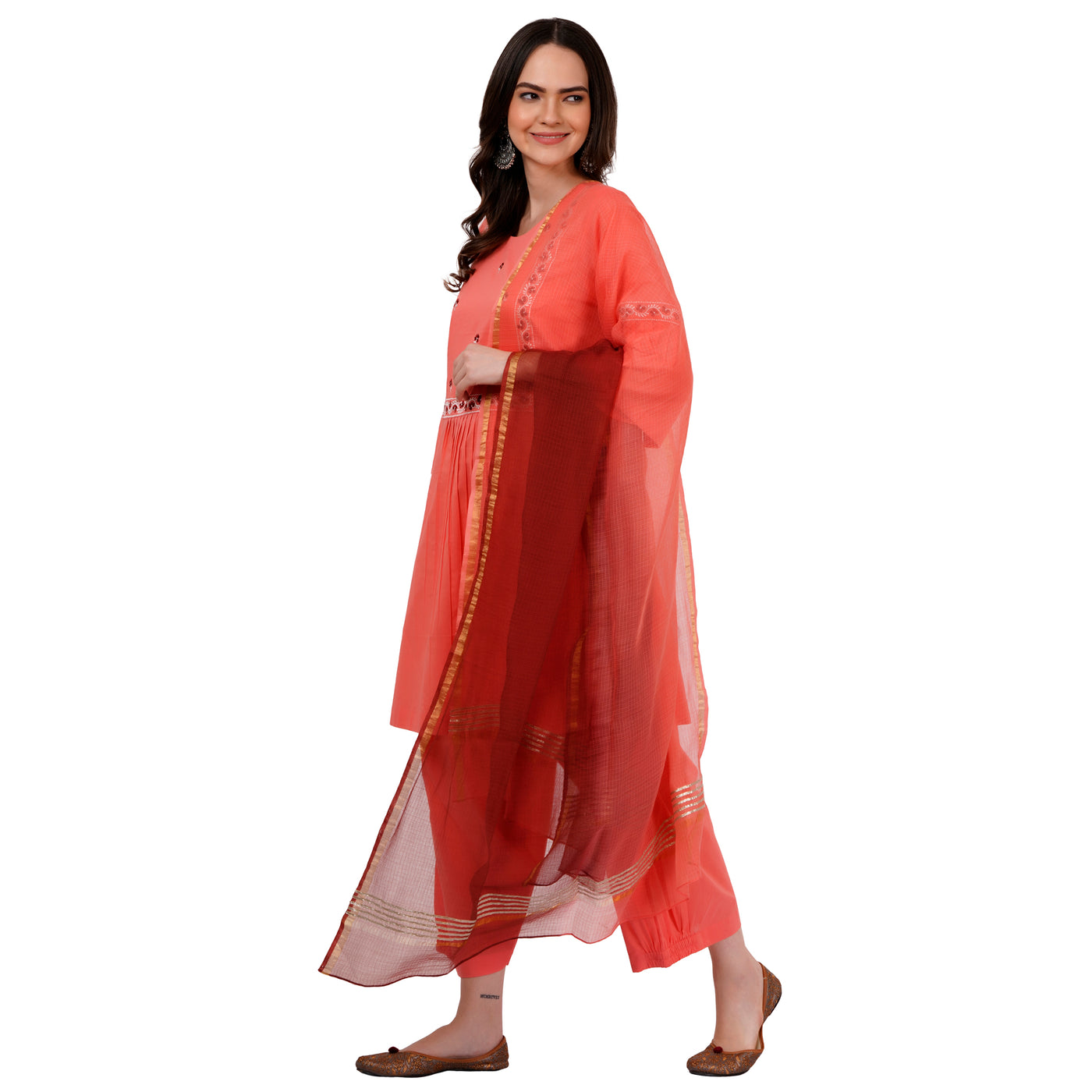 A pure cotton Kota dupatta dyed in 2 colours with gota edgings on 2 ends.