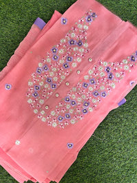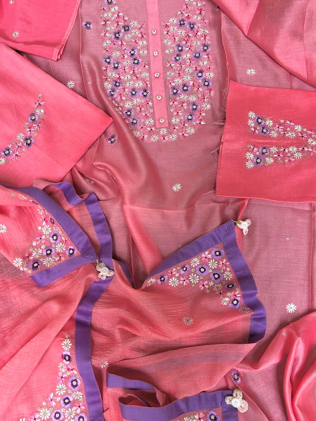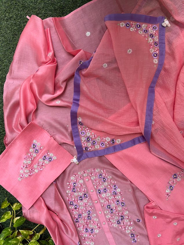 Salmon Chanderi Silk Embroidered Suit (Set Of 3)