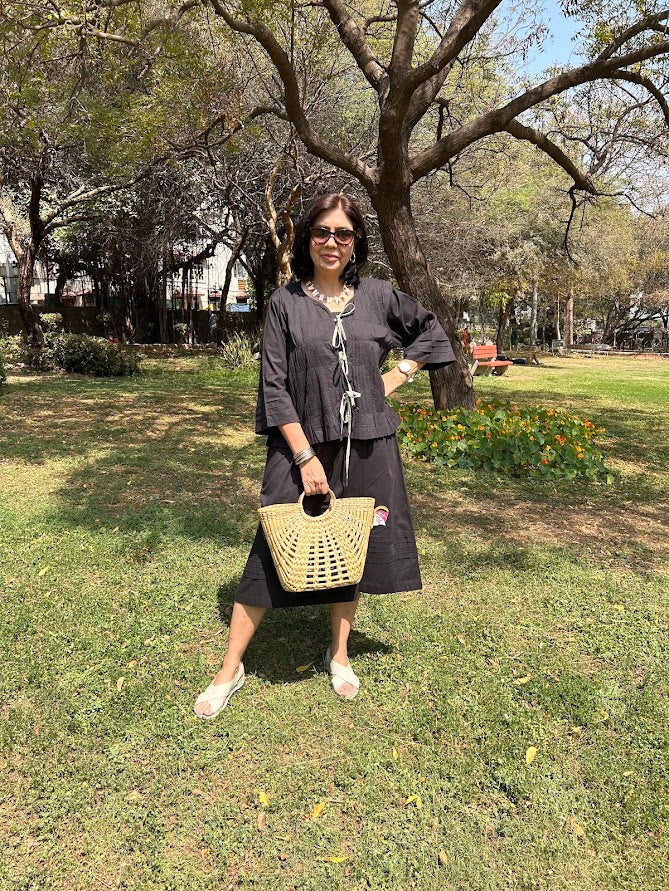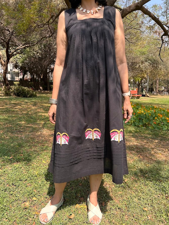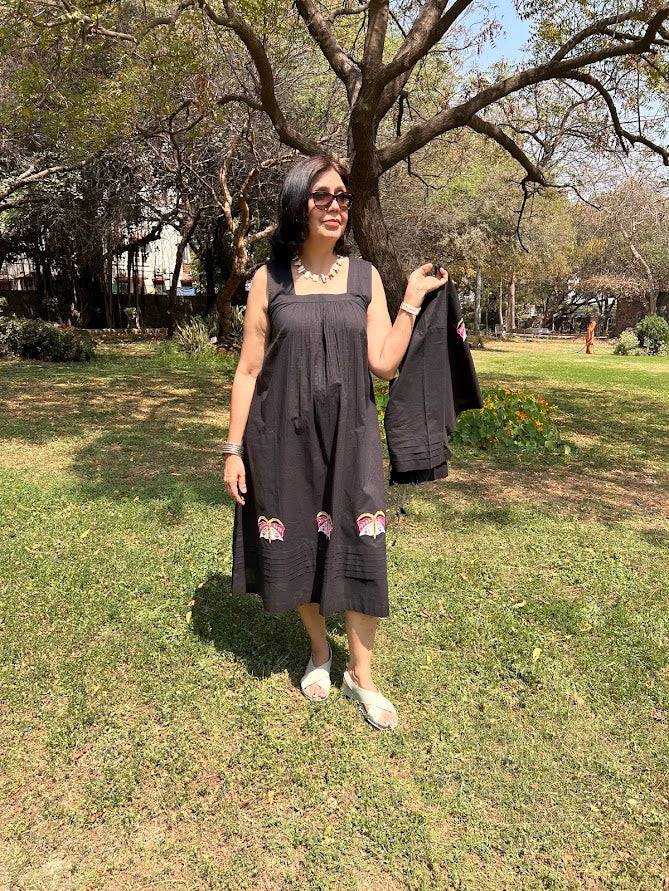 Inform when this item available Black Cotton Dress With Applique & Overlay