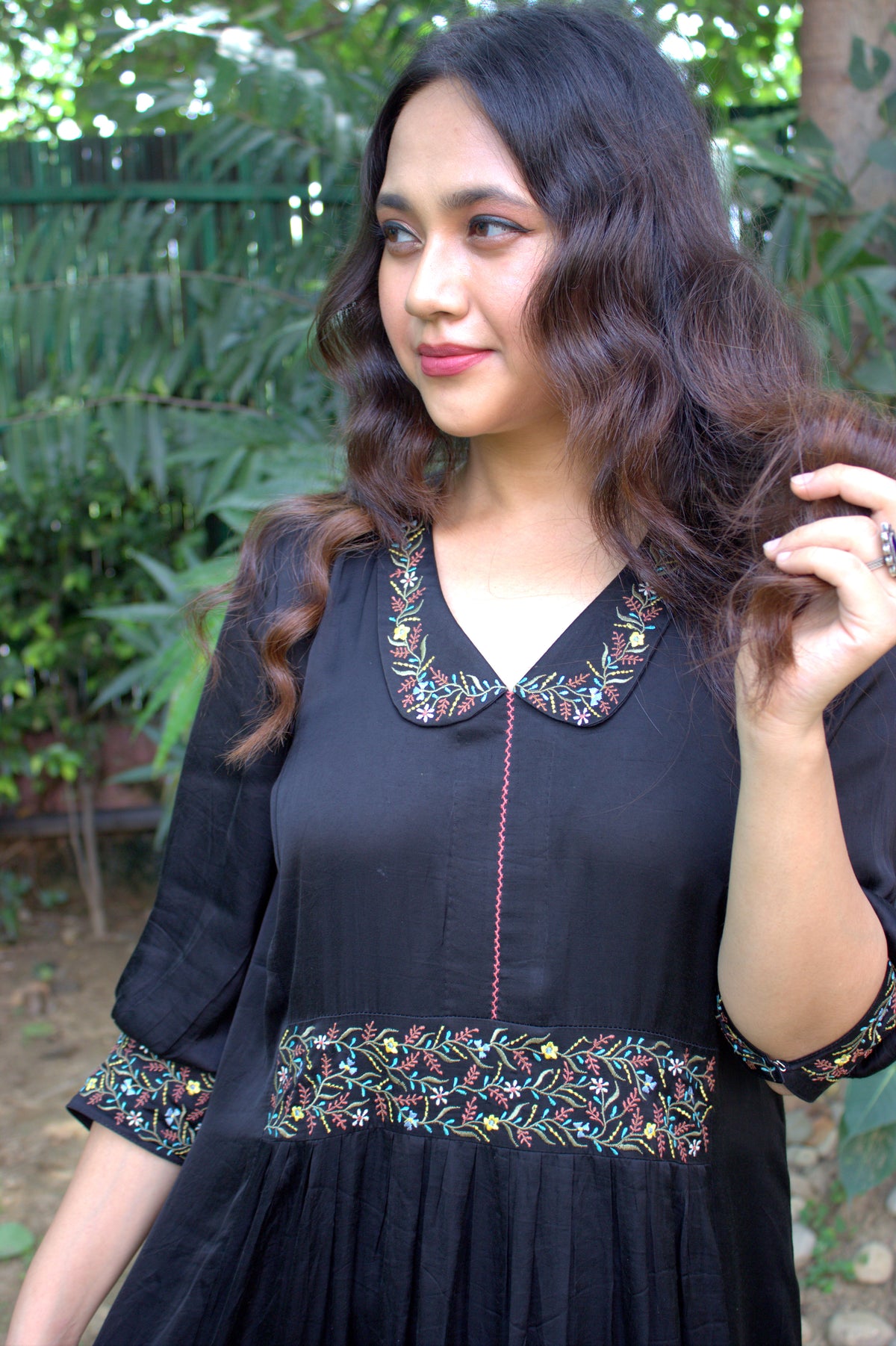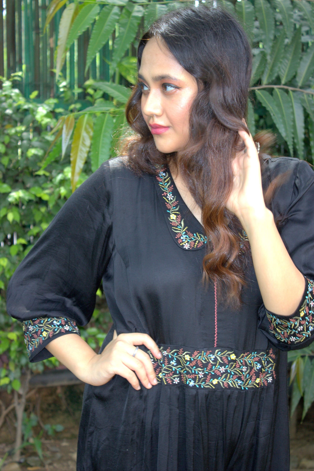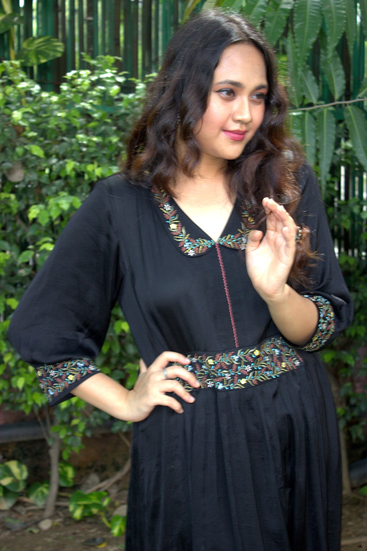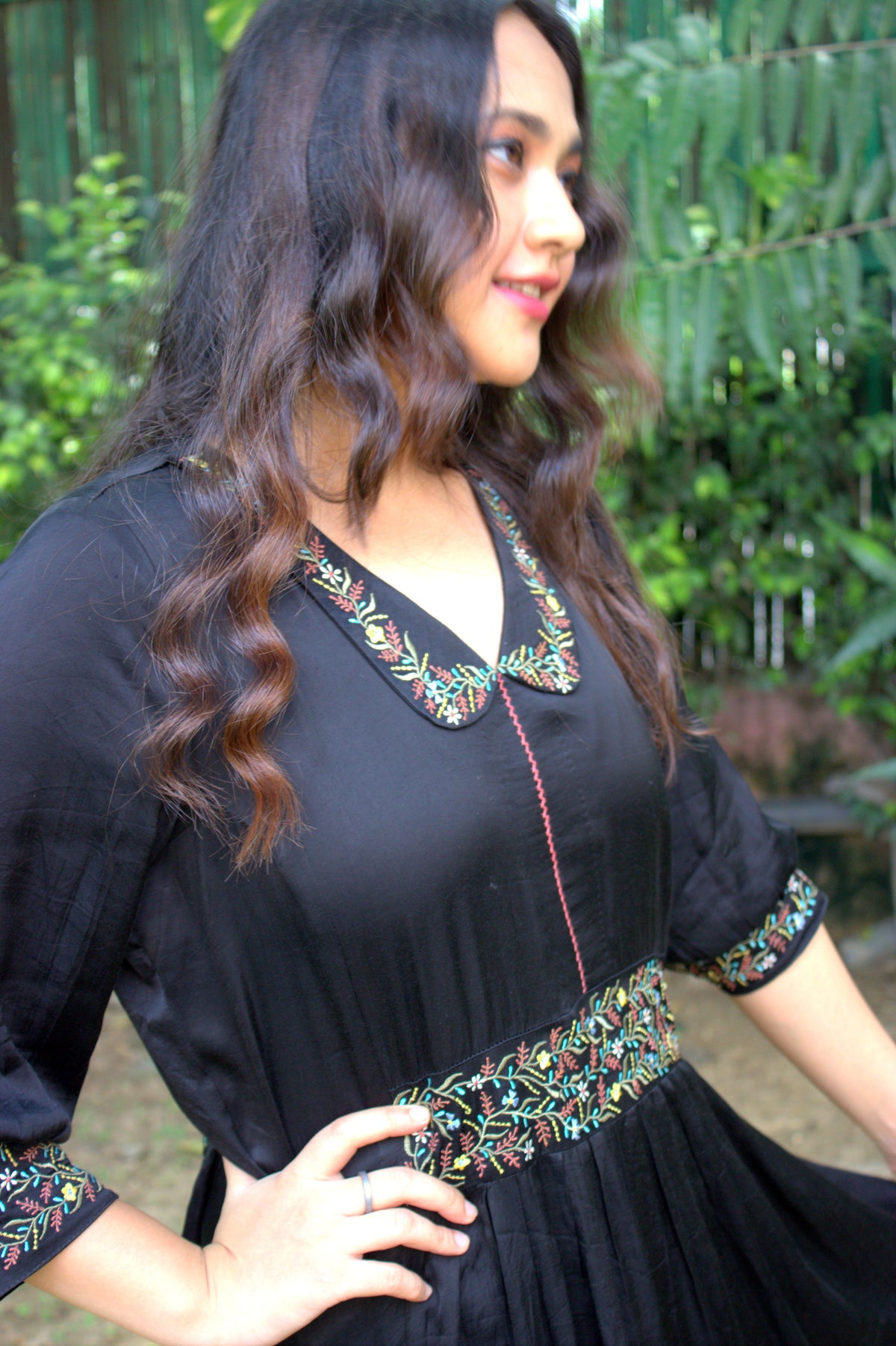 Craft : multithread intricate floral embroidery on the collar, belt front and back and sleeves