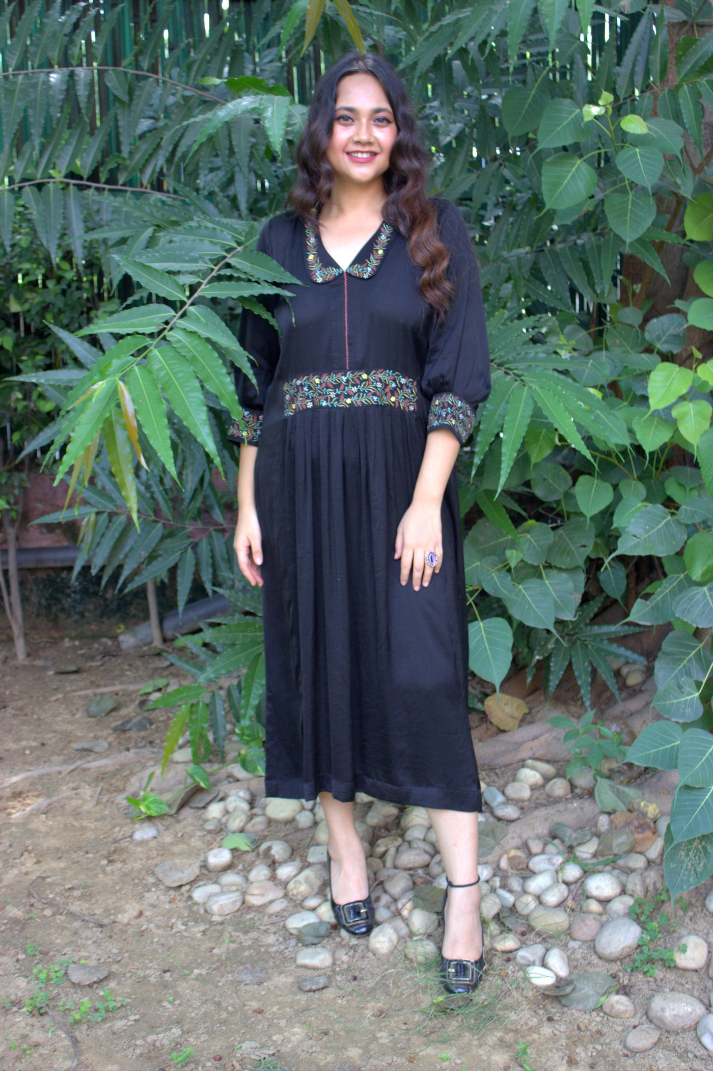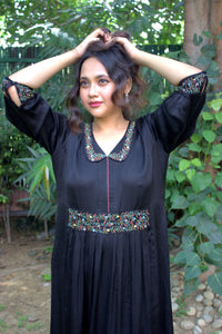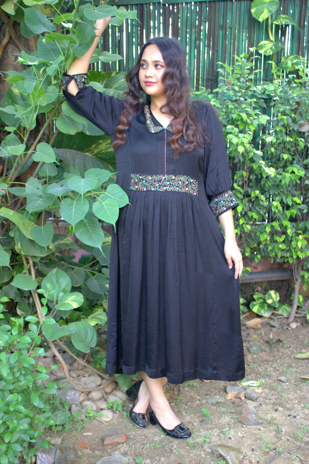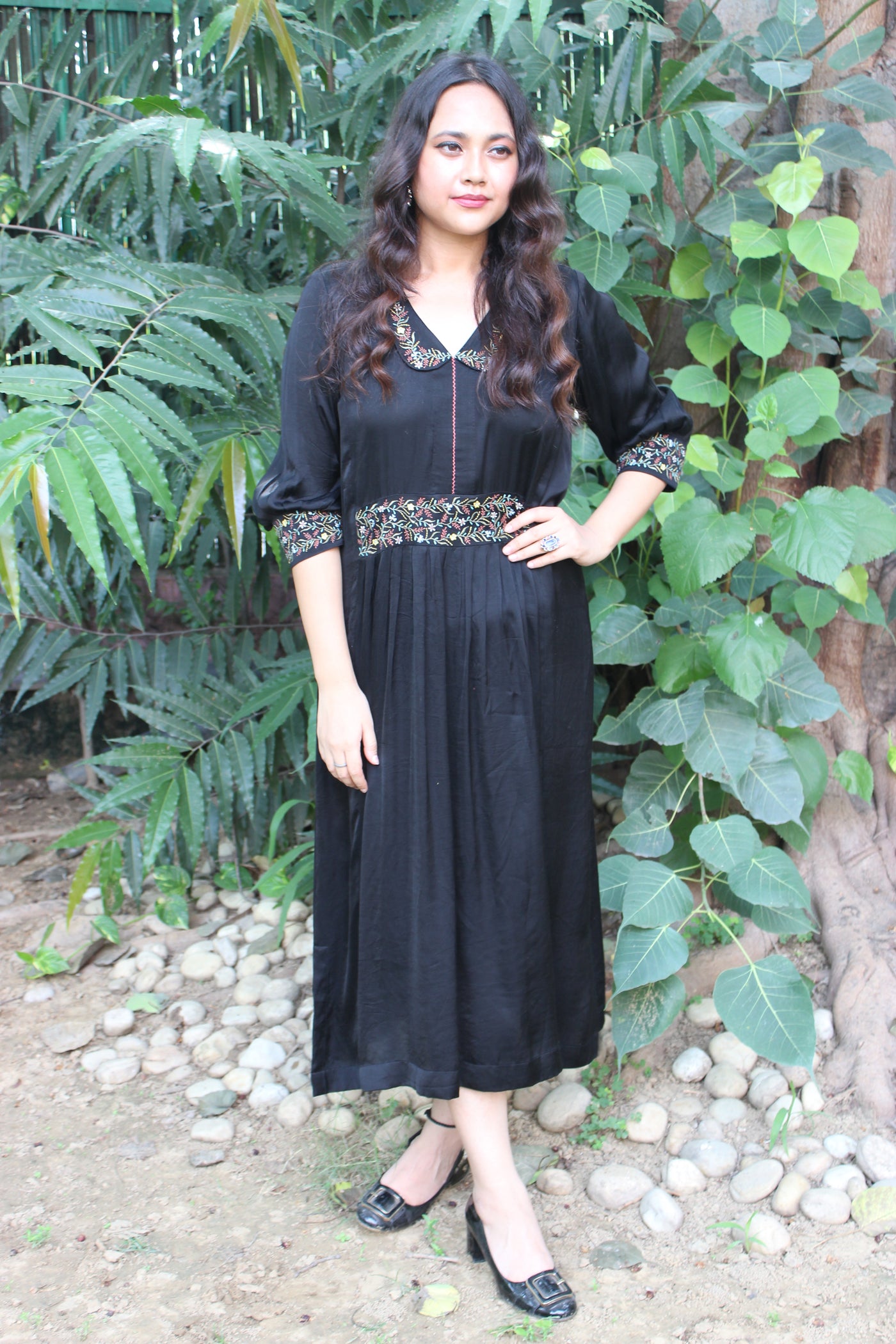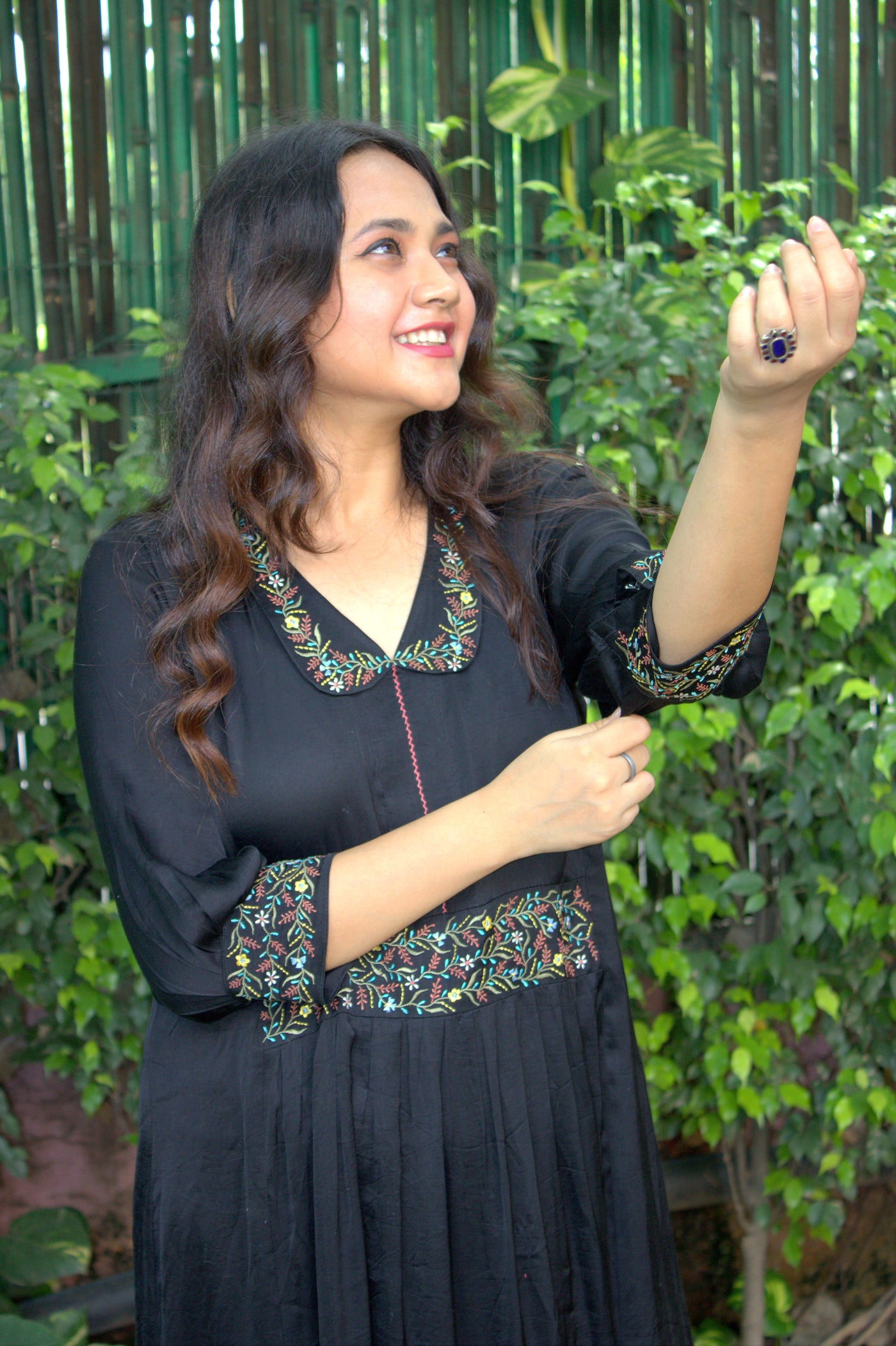 Craft : multithread intricate floral embroidery on the collar, belt front and back and sleeves