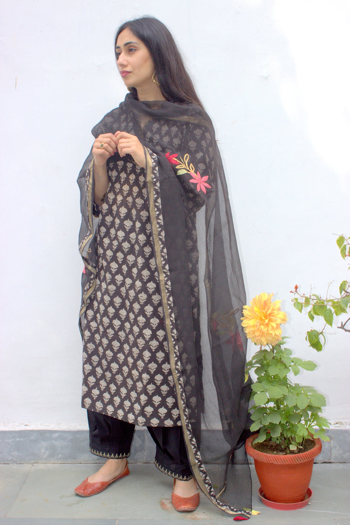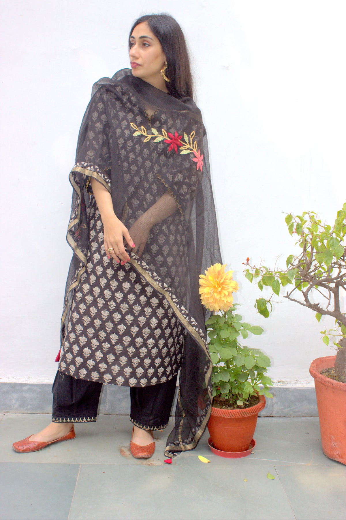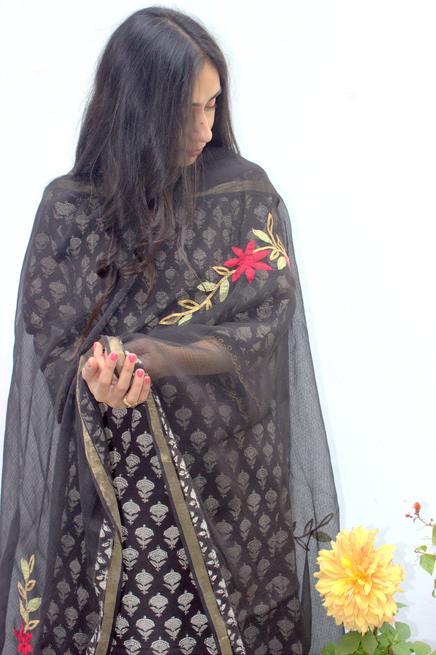 Craft : Floral applique and gota embroidery