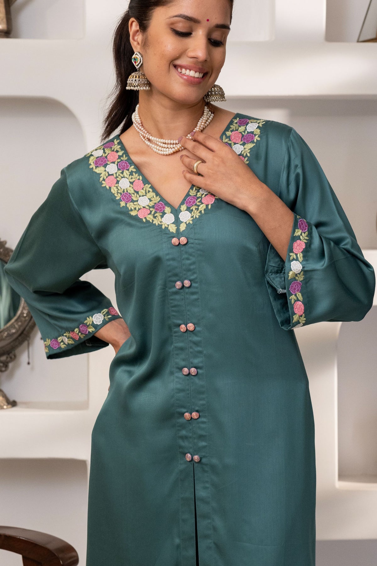 Kurta fabric: Modal silk with applique and tilla embroidery