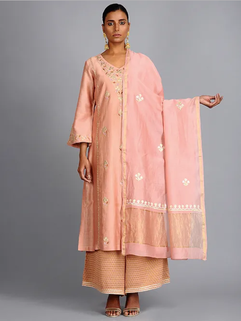 Inform when this item available Peach Gota Embroidered Chanderi suit (set of 3)