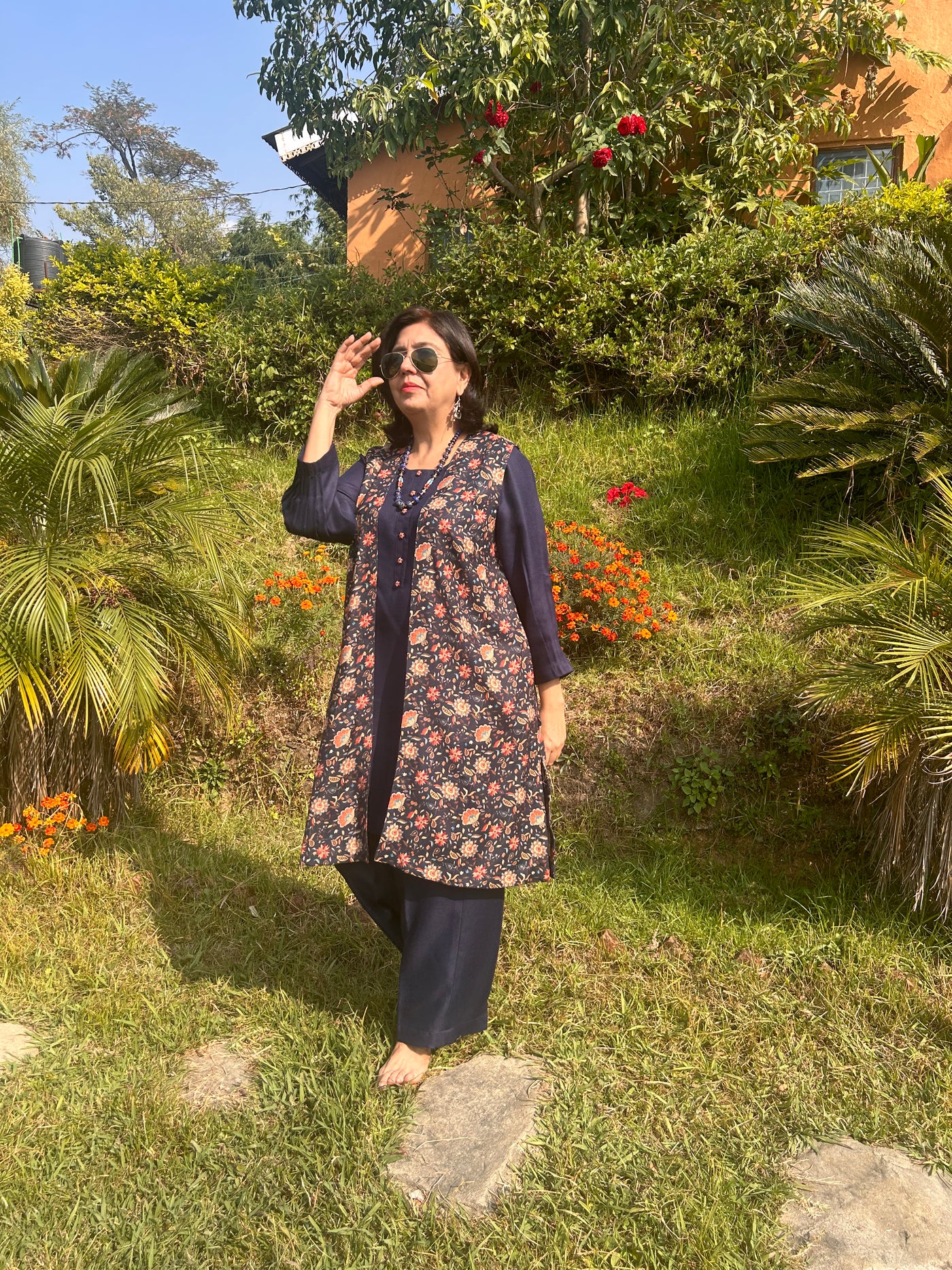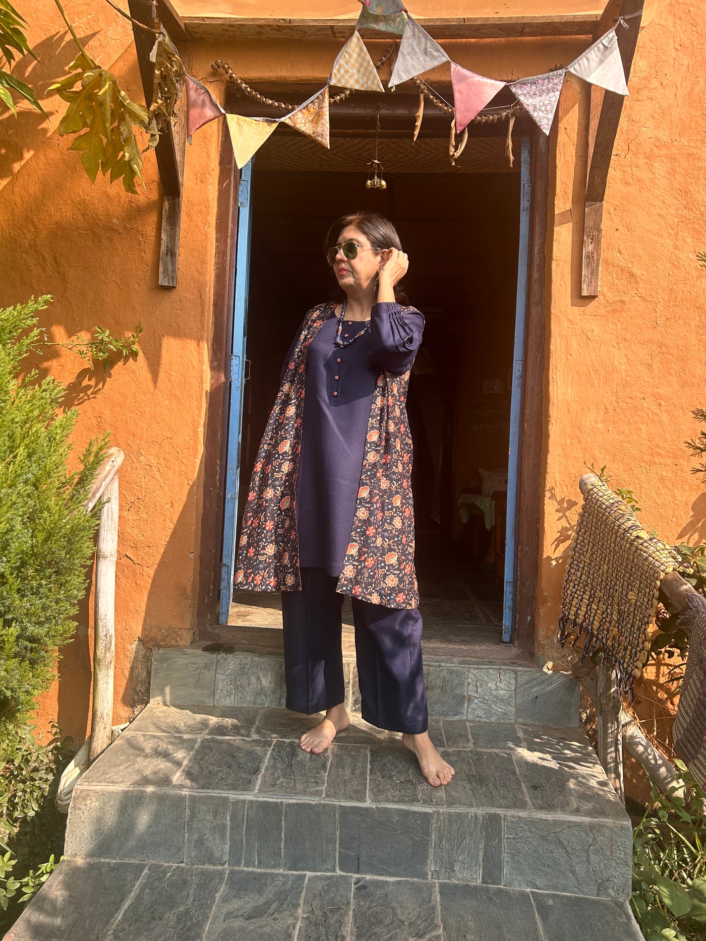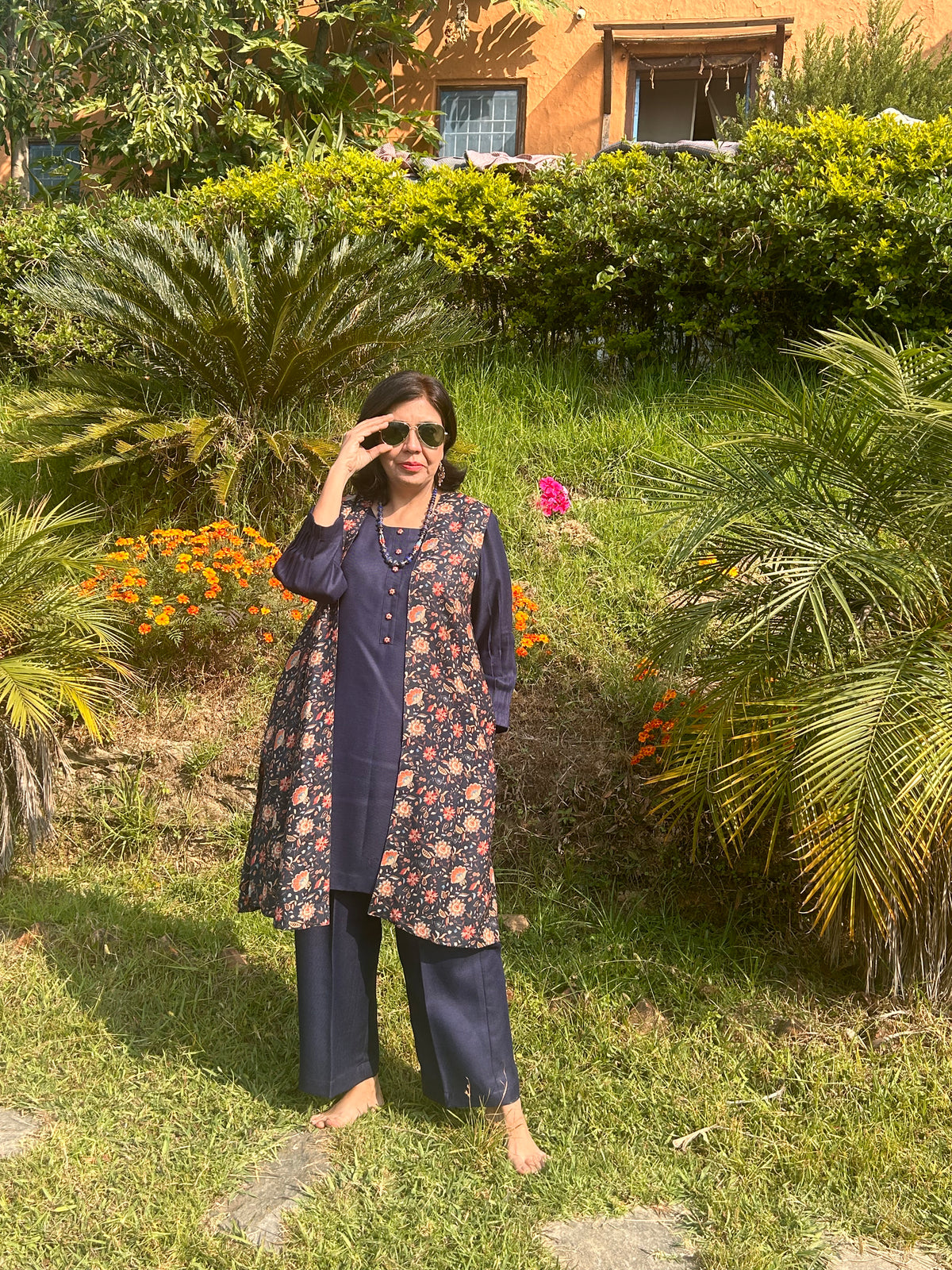 The best winter plain and printed co ord set with embroidery and pocket detailing .
