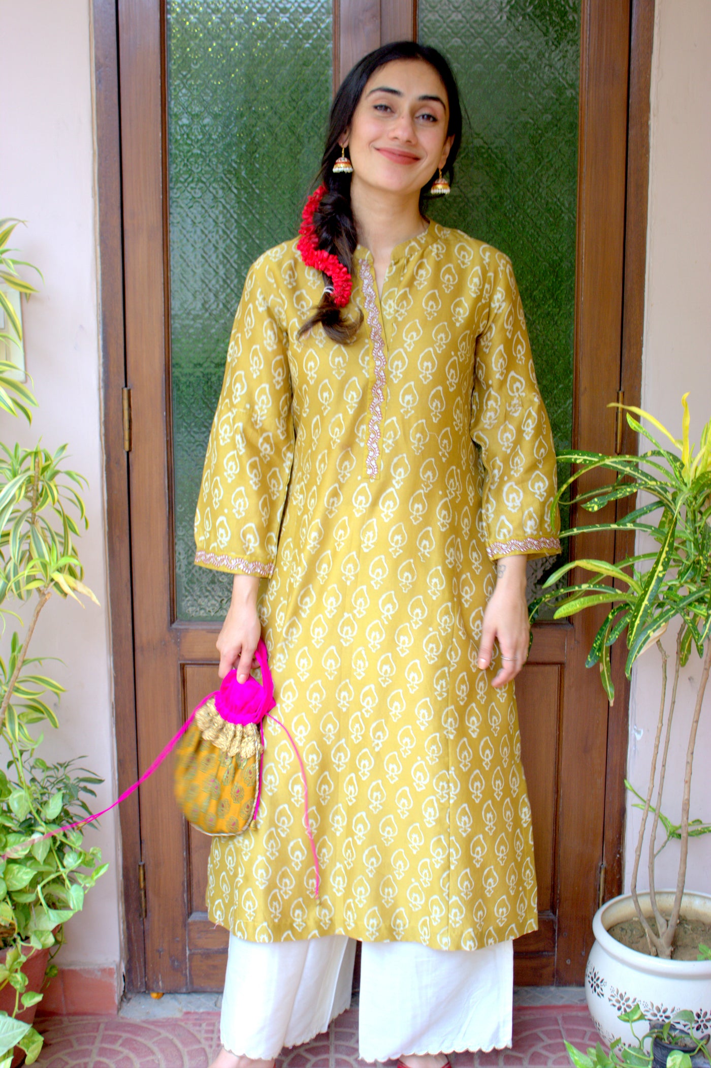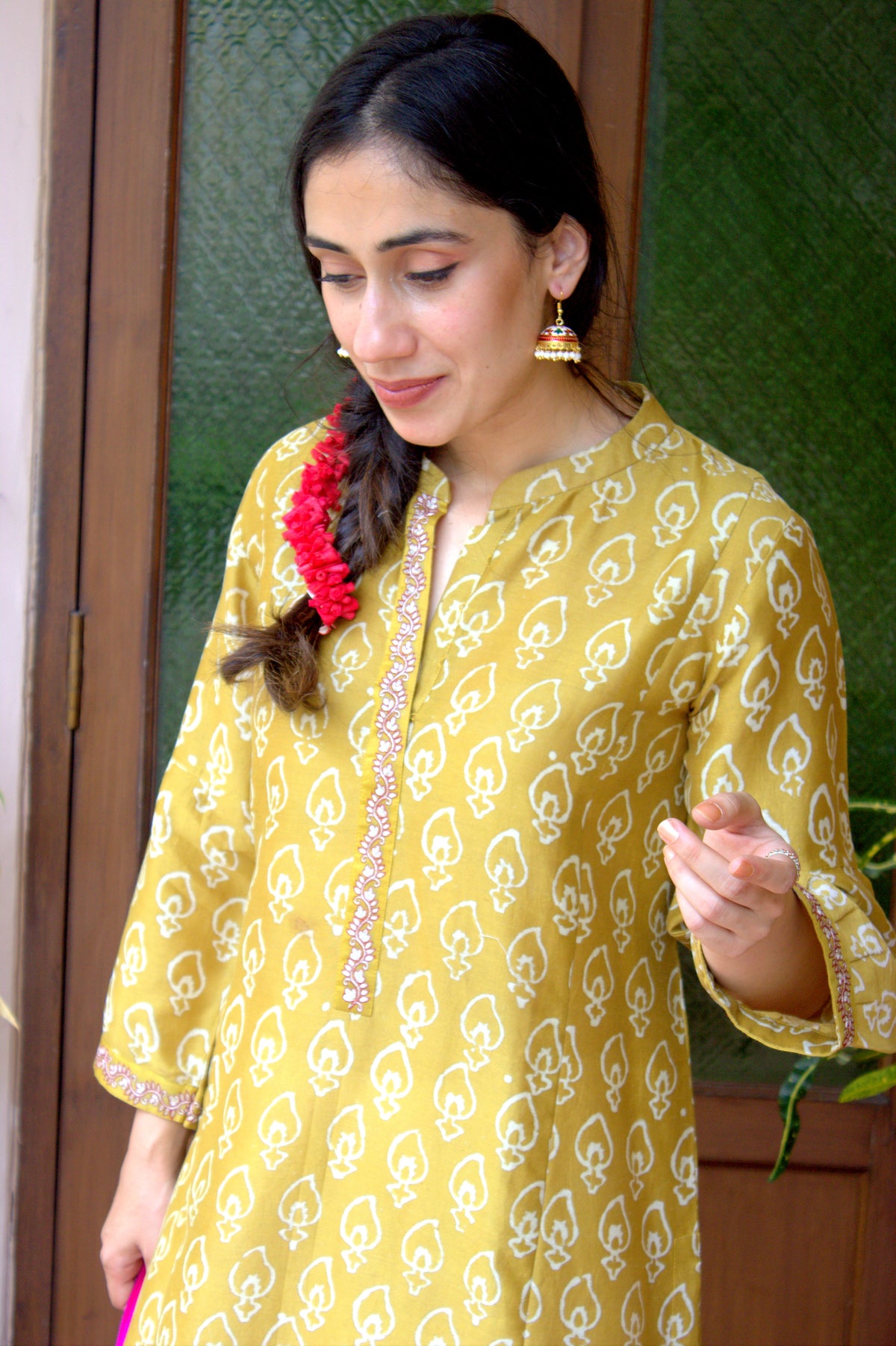 Inform when this item available Mriga Mud Handblocked printed Chanderi Kurta