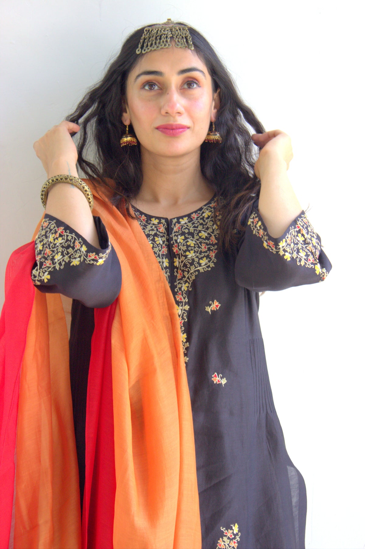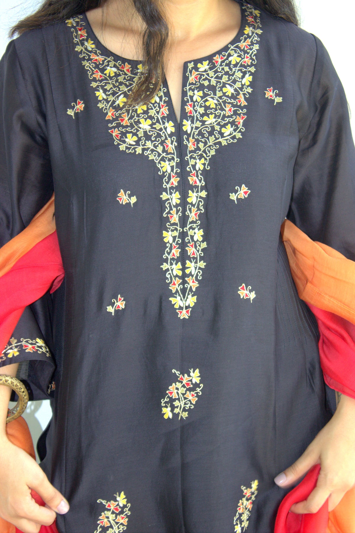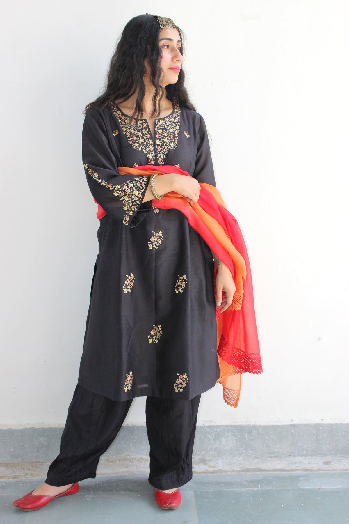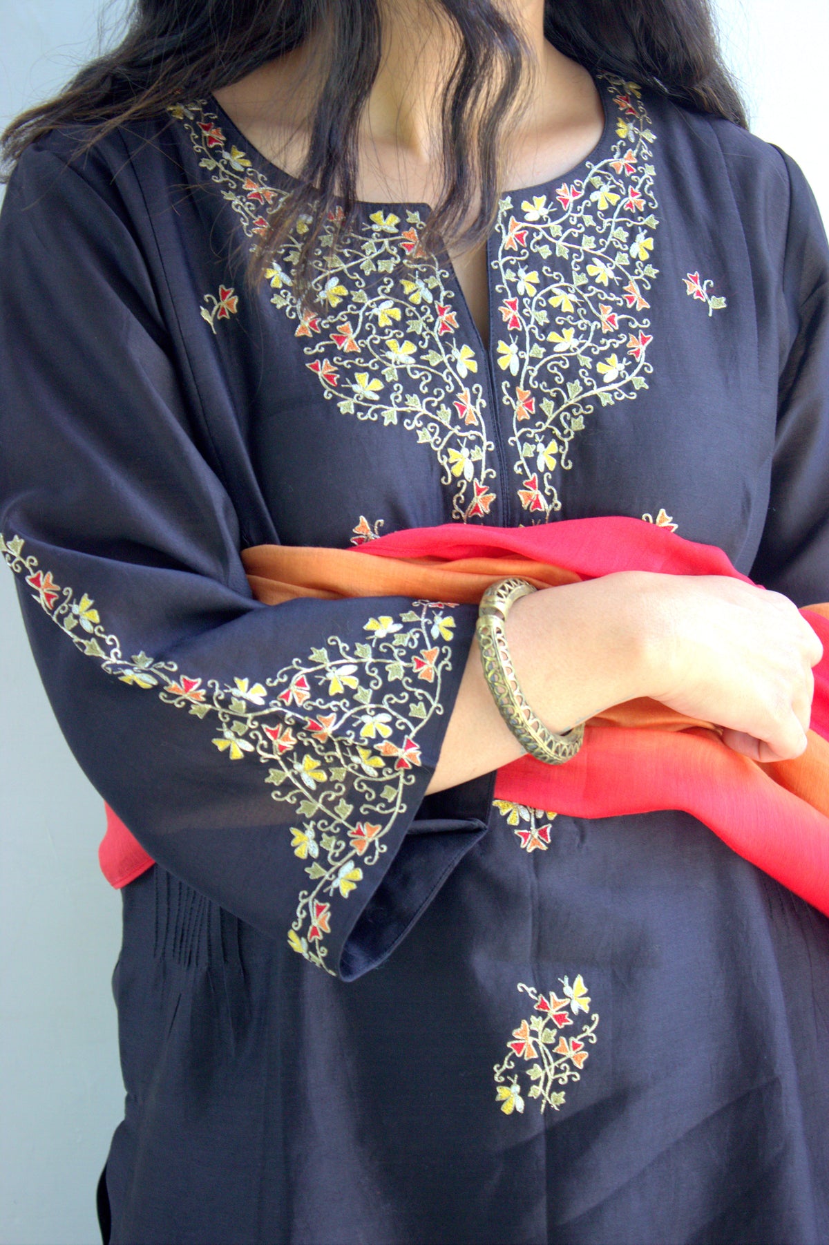 Craft : Delicate tilla and thread embroidery in flower and butterfly motifs