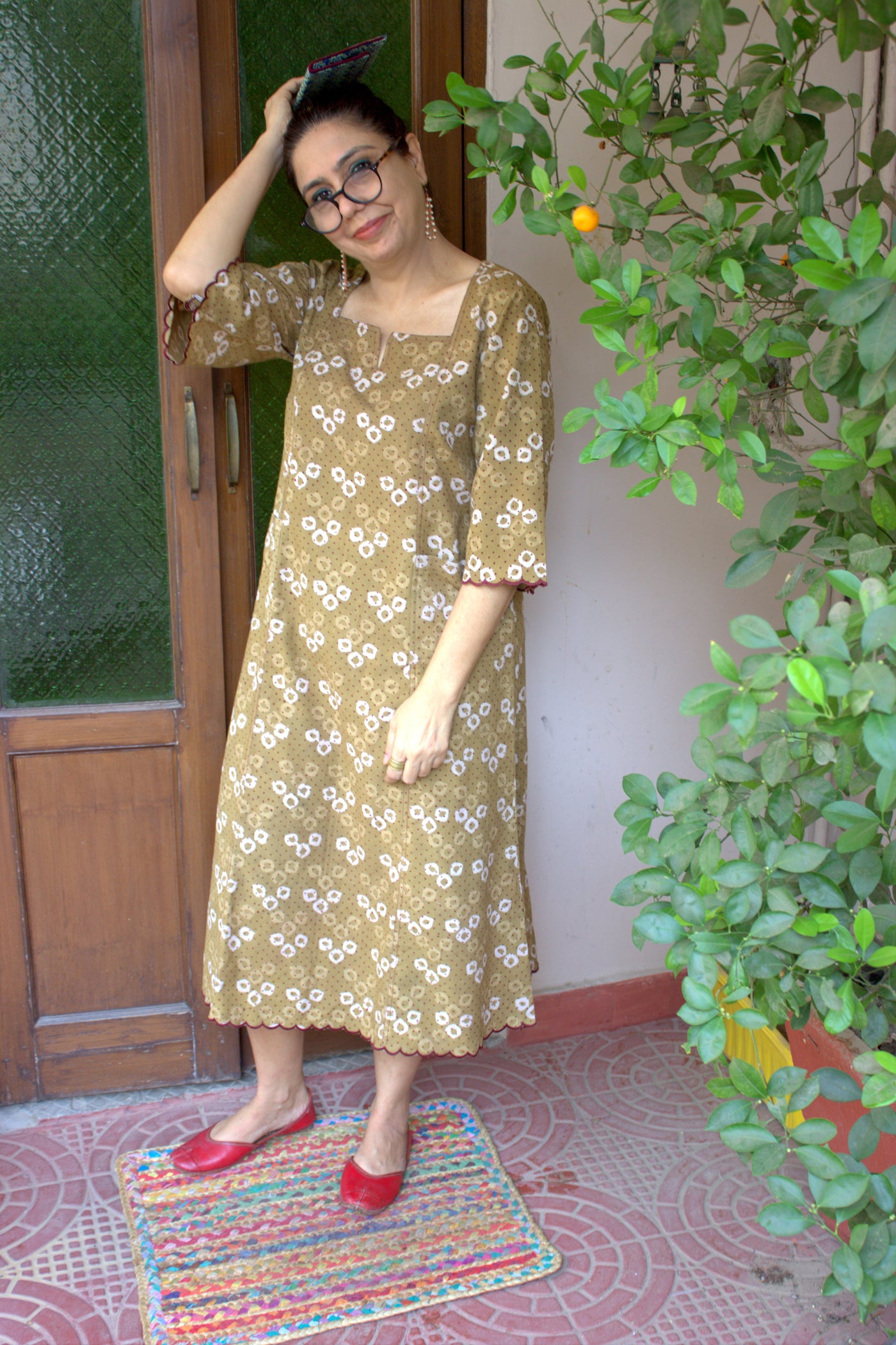 Craft : Dabu Handblock mud print/scallop embroidery