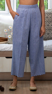 A pure cotton pants with scallop detailing and pocket. The length is customisable to your length.