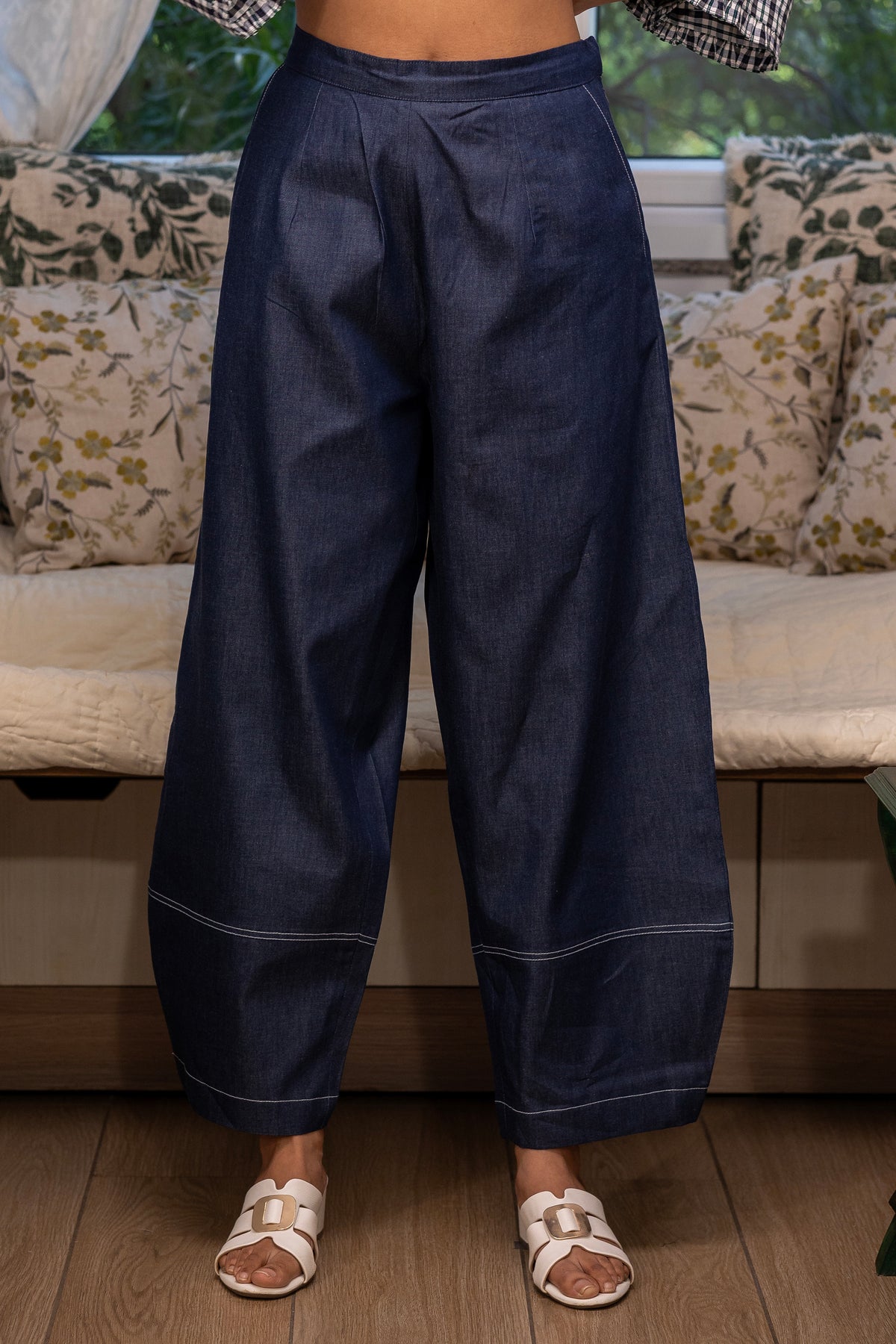 Contemporary and effortlessly stylish, the Modern Barrel Denim Pants are designed with a sculpted barrel silhouette that blends relaxed comfort with modern tailoring. Crafted in premium denim, these pants offer a refined yet easygoing look perfect for everyday sophistication.
