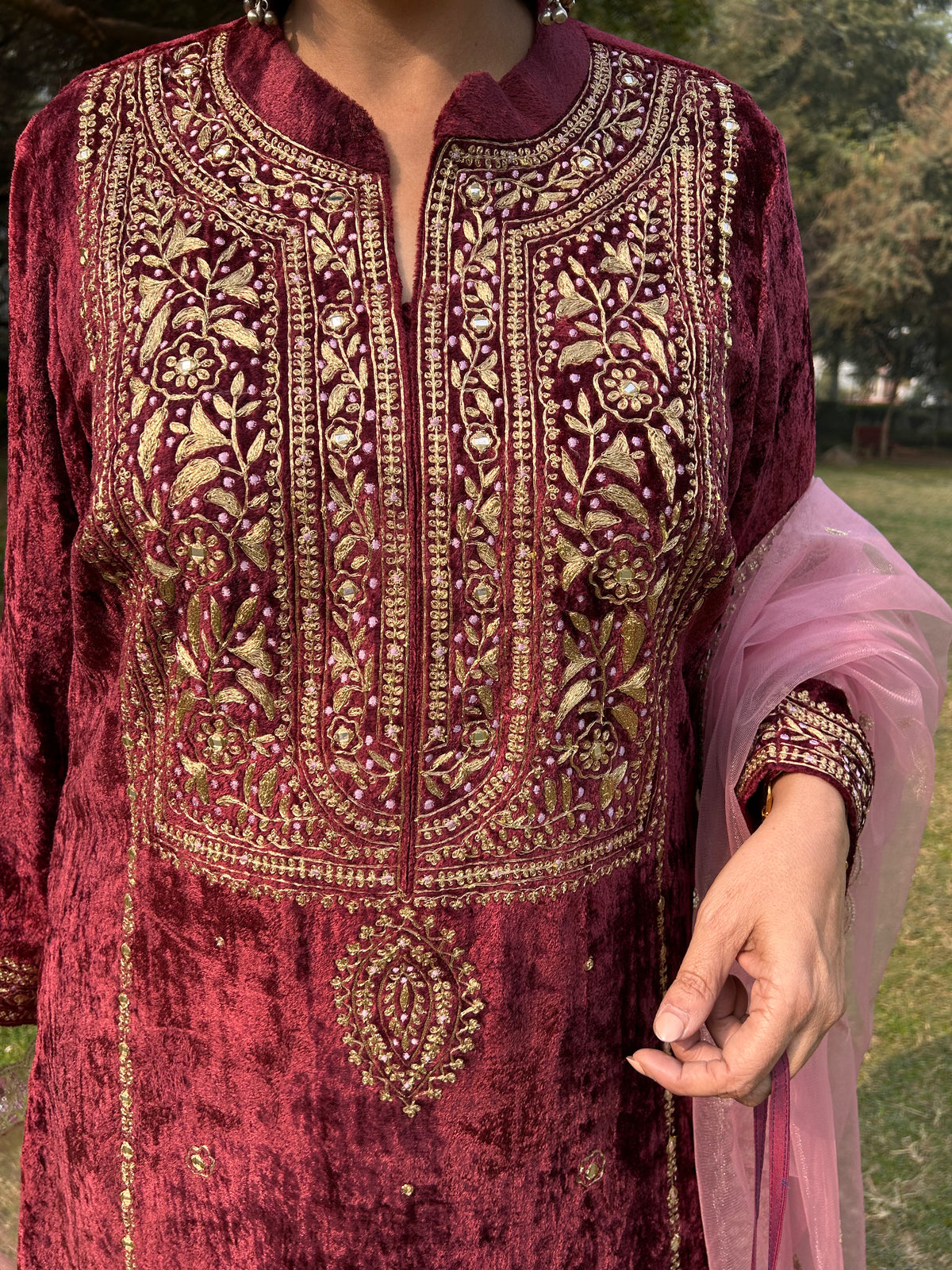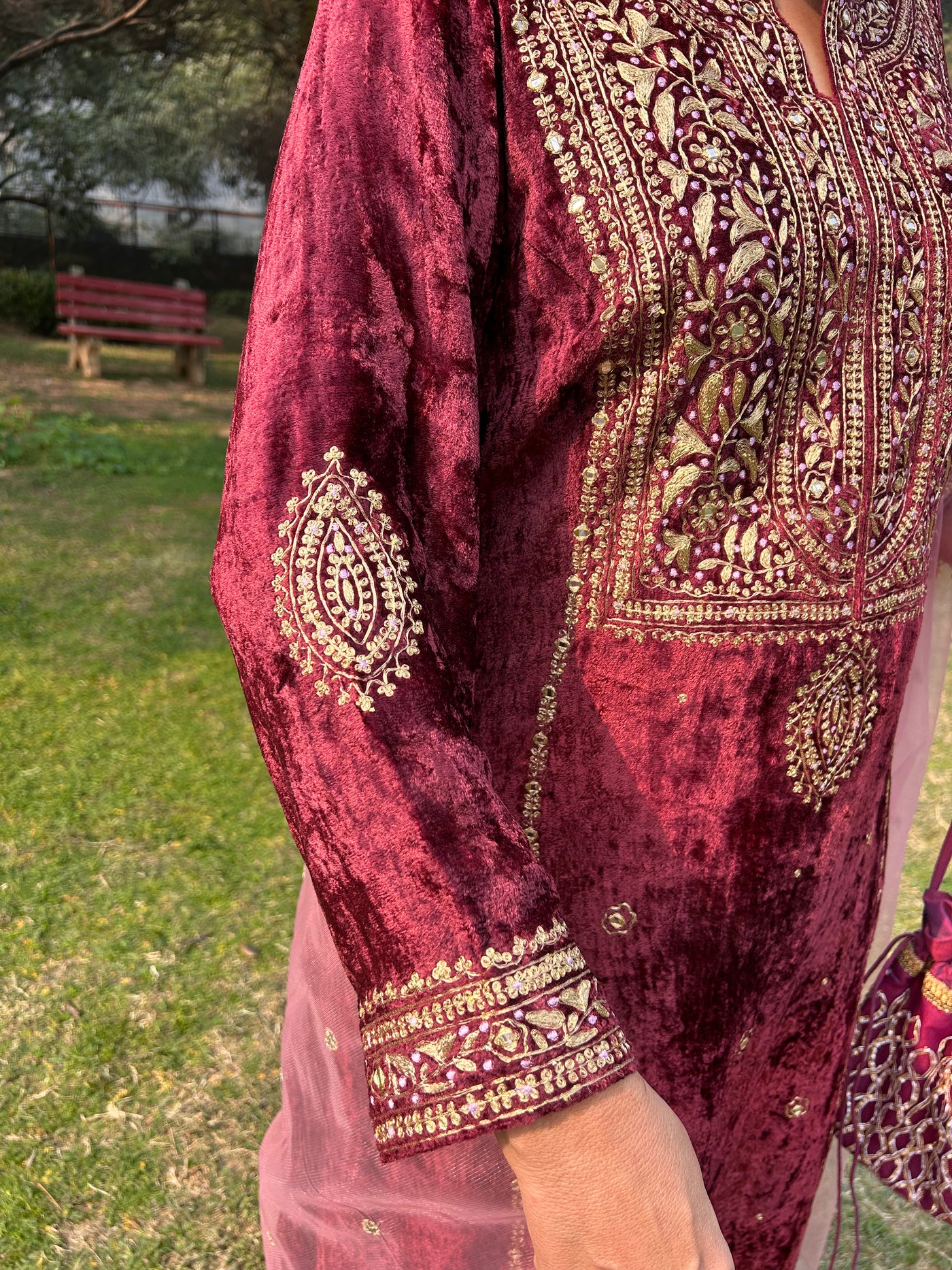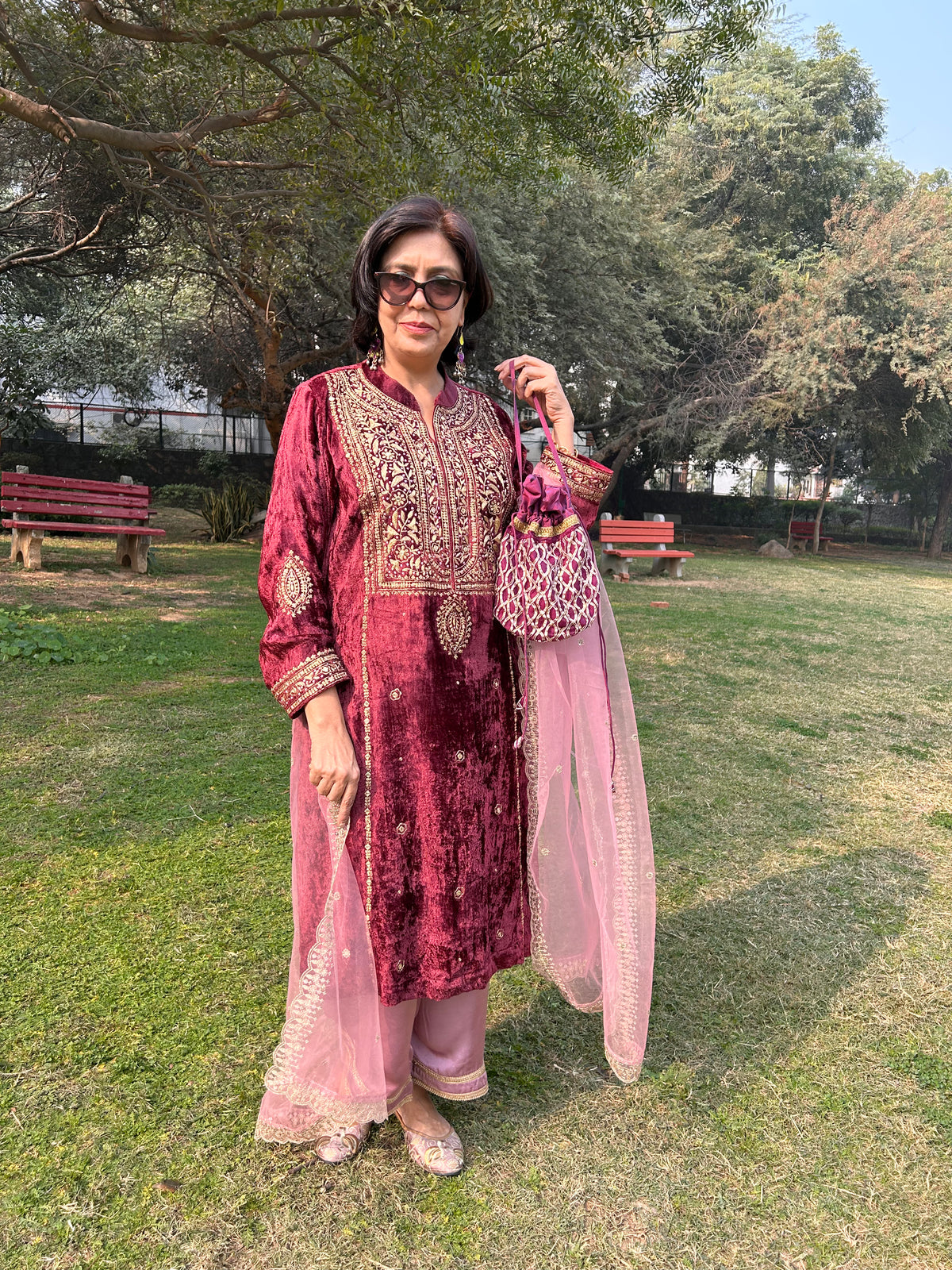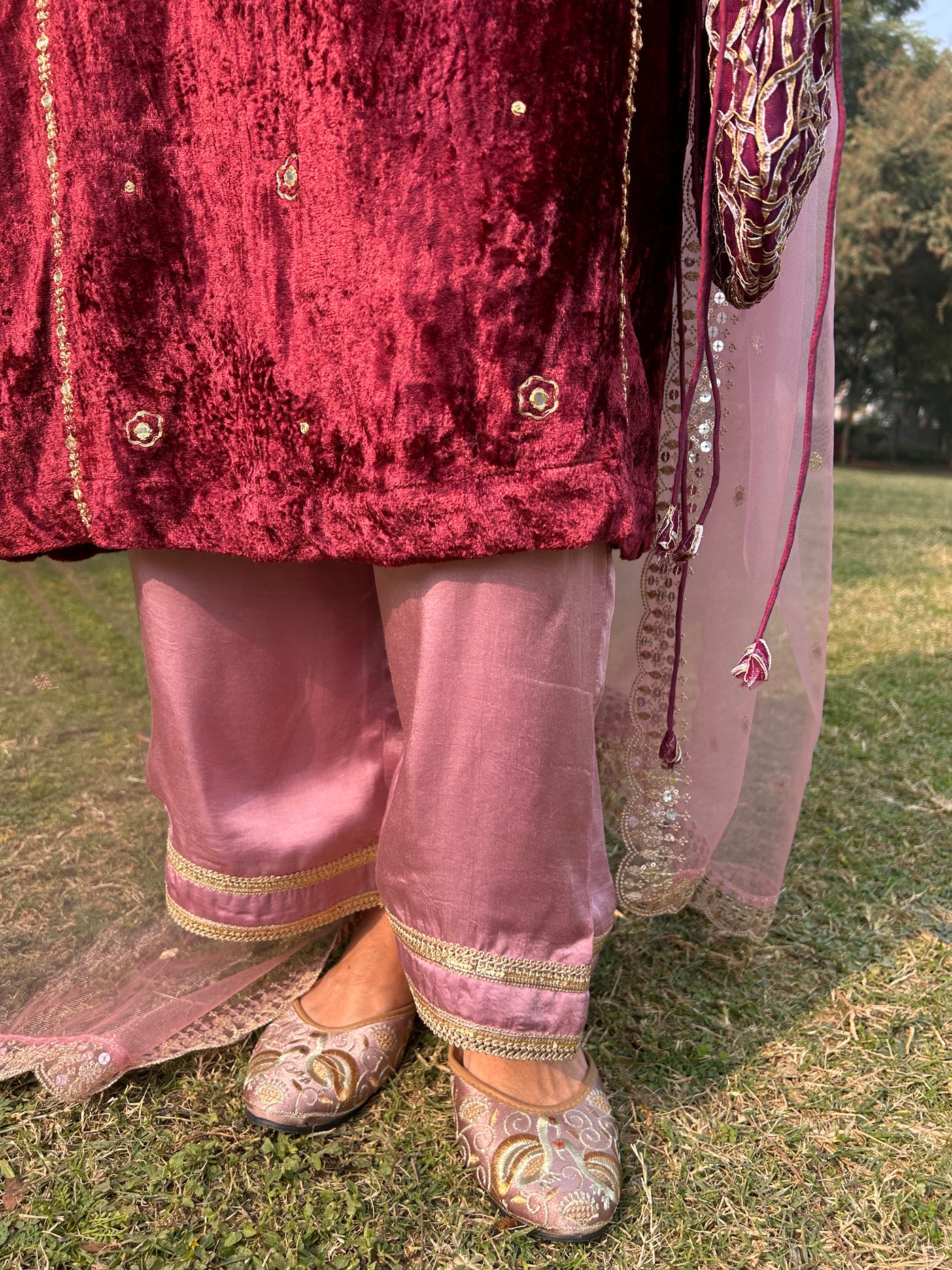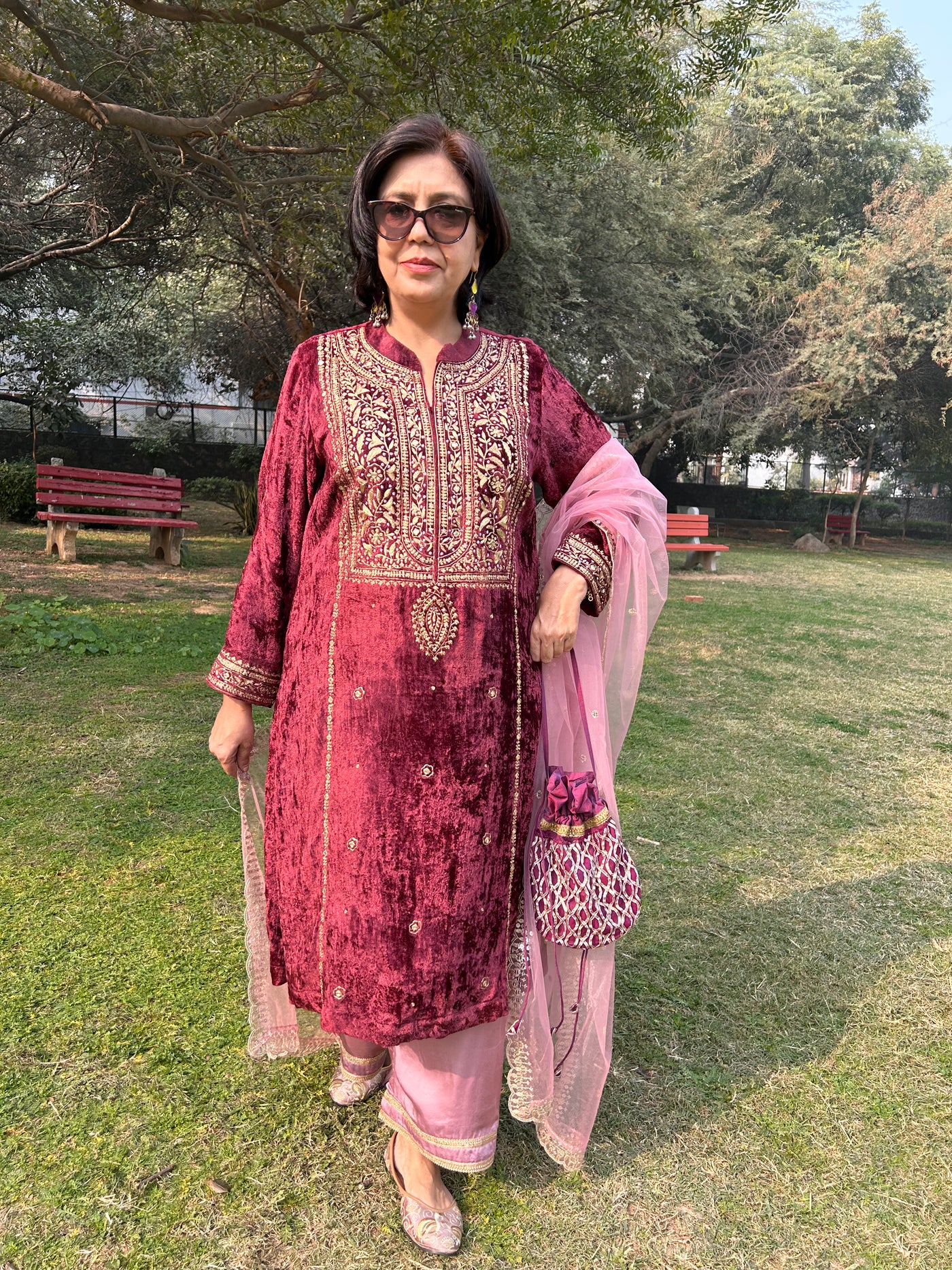 A ‘Makhmal’ festive collection in soft velvets with beautiful tilla embroideries .