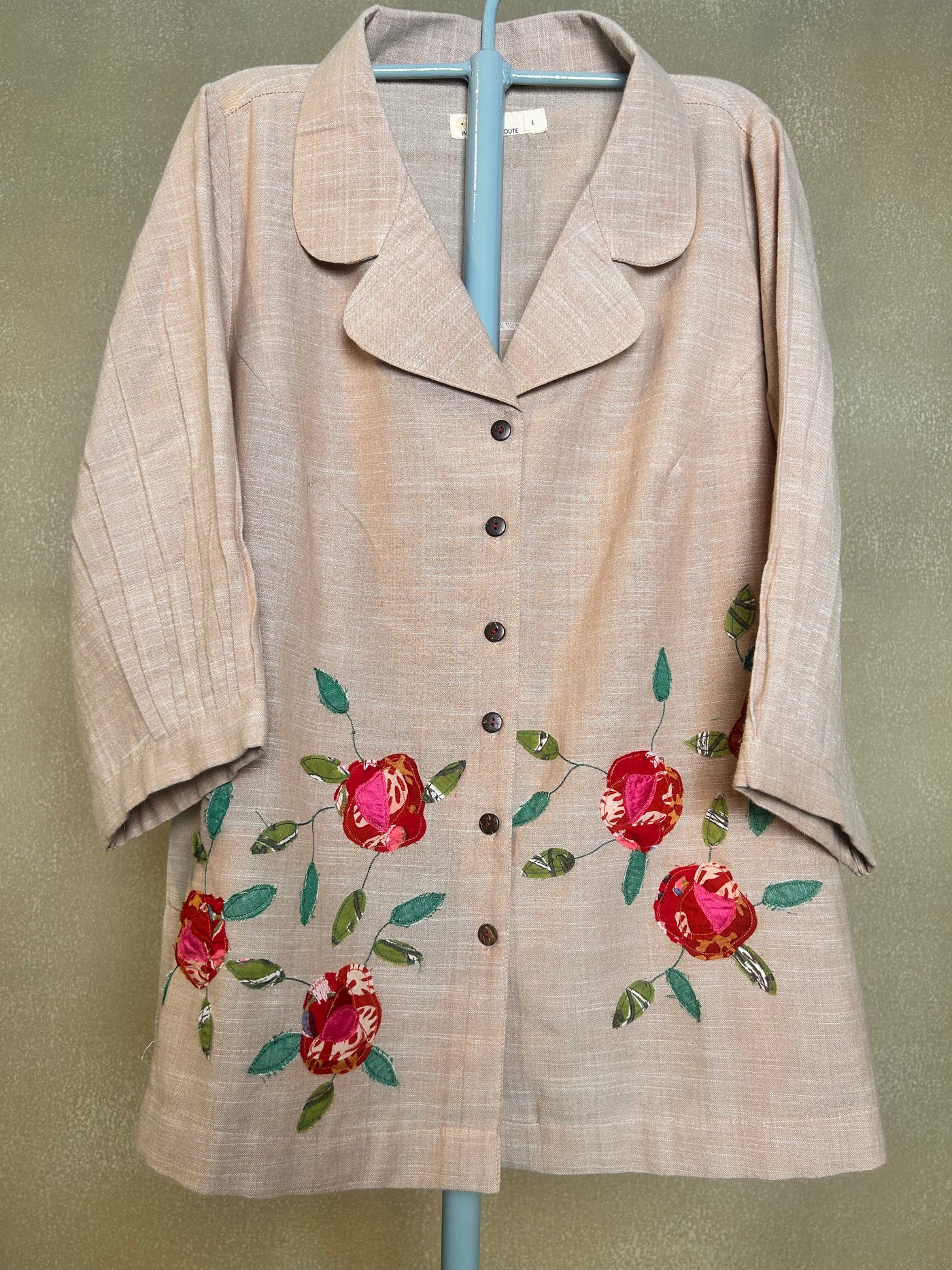 The floral multicoloured appliqué work is unique to make heads turn and notice you are someone special. It’s called ‘Rosy picture’ because on social media everyone’s life seems like a rosy picture but well it’s never as rosy as it may appear