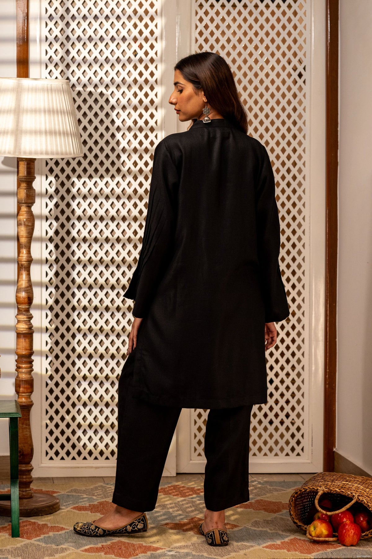 The Blue Moon Kurta Set is an elegant all-black winter ensemble crafted in premium winter spun fabric.