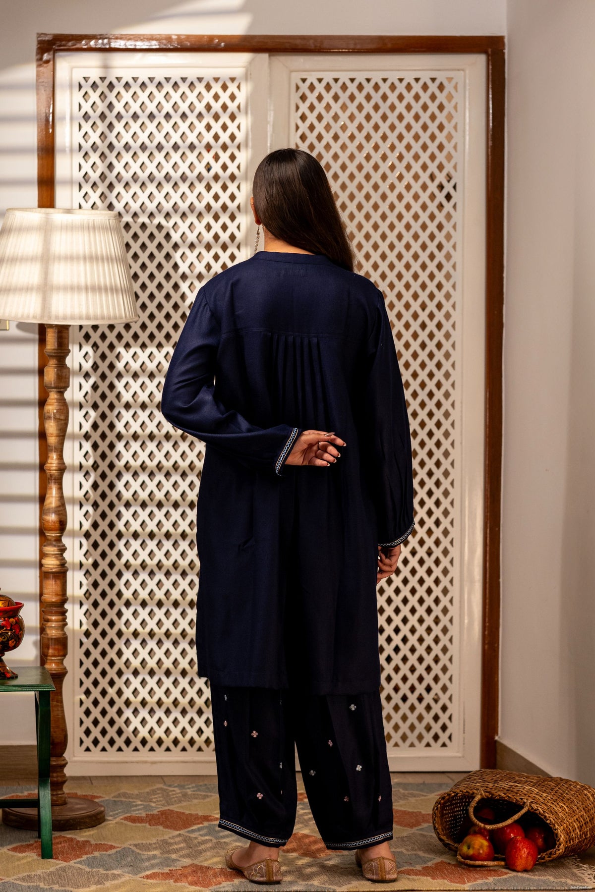 Effortlessly elegant and versatile, the Gulmarg Kurta Set captures the timeless beauty of Kashmiri craftsmanship in a rich, deep navy blue. Crafted from premium winter spun fabric, it combines warmth, comfort, and a luxurious drape, making it perfect for winter festivities, dinner parties, office gatherings, or cozy cultural celebrations. This ensemble elevates everyday luxury with intricate details that truly stand out.